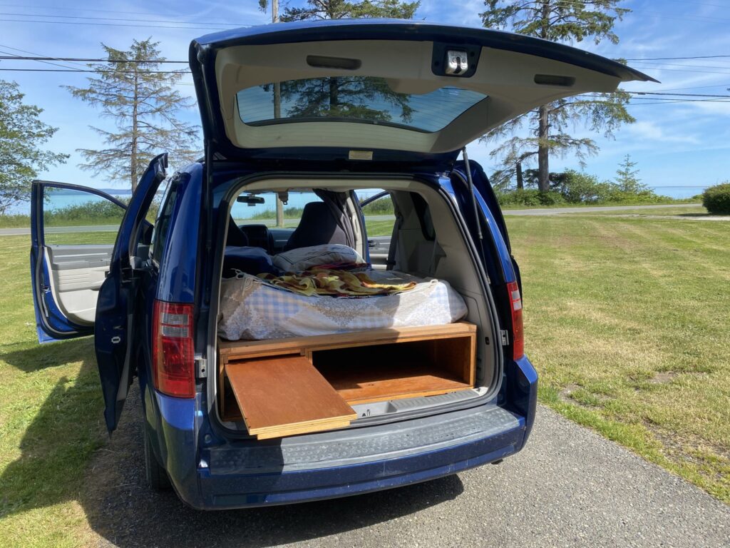 - 2010 Grand Caravan: A versatile vehicle that can be converted to carry 7 passengers or transformed into a sleeper with a bed and ample storage space for camping gear—ideal for those looking to hit the road and camp in comfort.